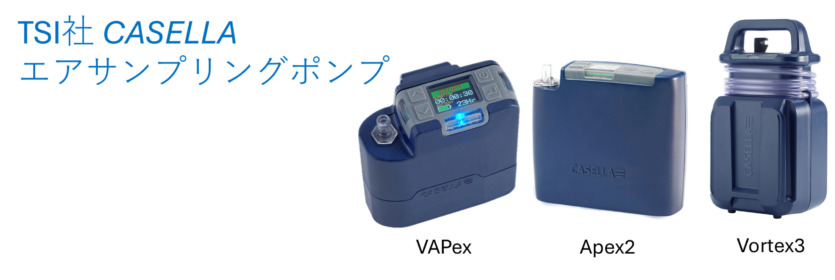 TSI社・Casella のエアサンプリングポンプは、測定対象物質に合わせて最適な流量帯を選べるよう、Apex2・VAPex・Vortex3 の3モデルをラインアップしています。